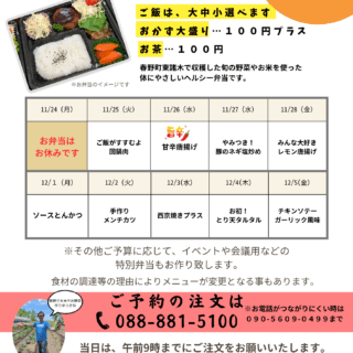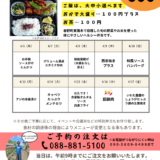 利用者みんなで育てて収穫した、太陽の光をいっぱい浴びた元気な新鮮野菜を使って、毎日日替わりのお弁当を作っています。